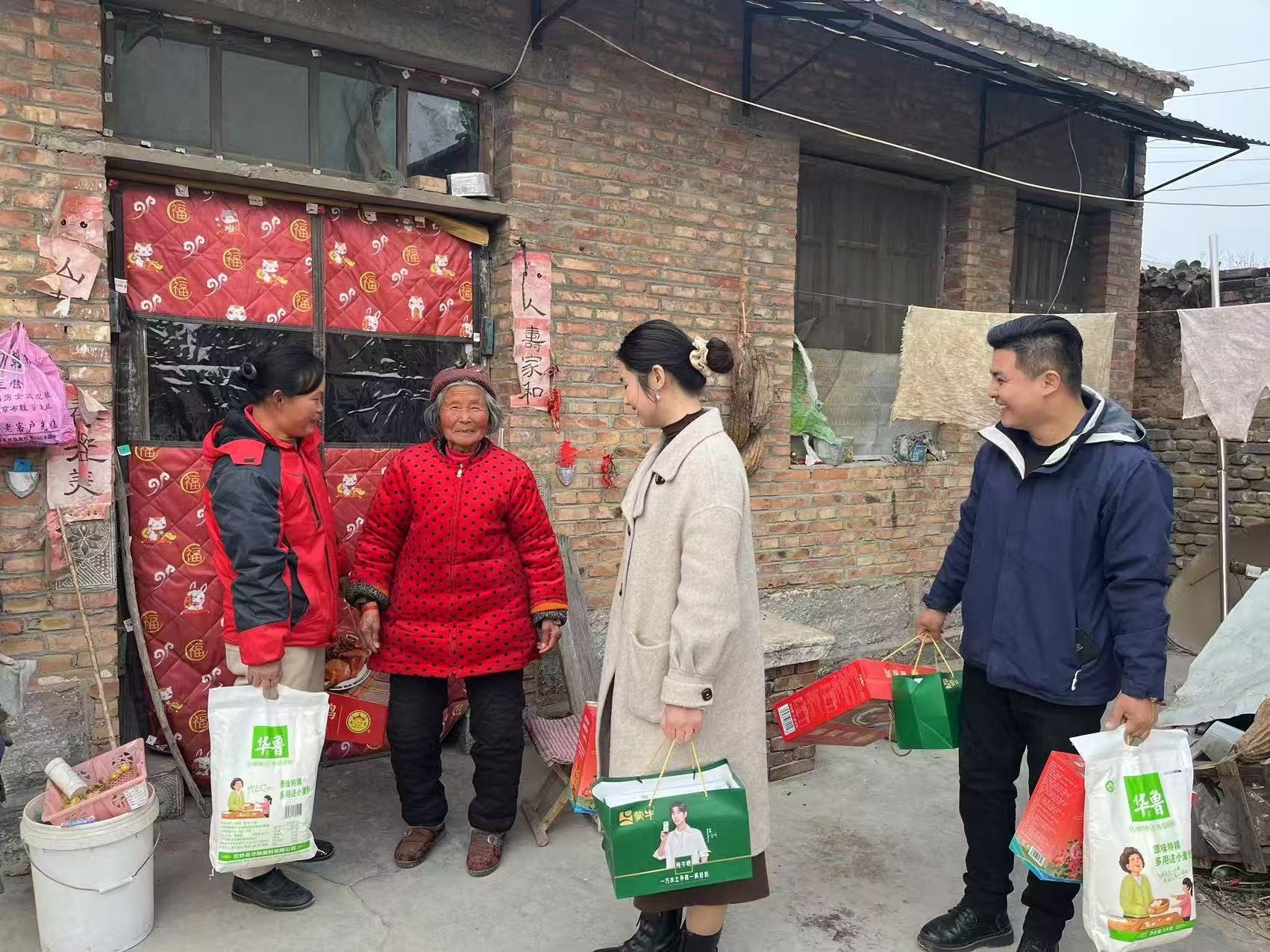 公司員工們帶著精心準備的牛奶、燒雞、米、面等生活物資來到程莊。每到一戶,大家都與老人們親切交流,仔細詢問他們的日常生活和身體狀況,傾聽他們的需求,為他們送上新春的祝福。老人們收到慰問品后,臉上綻放出幸福的笑容,對公司的善舉表達了誠摯的感謝。這些慰問物資不僅能解決他們生活中的實際困難,更讓他們在寒冬中感受到了濃濃的暖意。